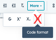 The More button in the top menu bar of HubSpot Knowledge Base article editor unlocks advanced formatting tools. Use these intentionally and only when they add meaning.